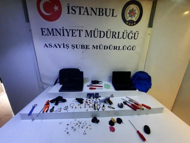 Şüphelilerin İstanbul’un birçok farklı ilçesinde girdikleri ev ve iş yerlerinden para, ziynet eşyası ve elektronik eşya çalarak vatandaşları yüz binlerce TL zarara uğrattıkları tespit edildi. Hırsızların adreslerinde yapılan aramada iki adet tabanca ve çaldıkları birçok eşya ele geçirildi. Polisin bir adreste yaptığı aramada ise, klozetin içine yerleştirilmiş halde 50 bin TL değerinde altın bulundu. Şüphelilerden biri altınları diğer arkadaşlarından gizlemek için oraya yerleştirdiğini itiraf etti.