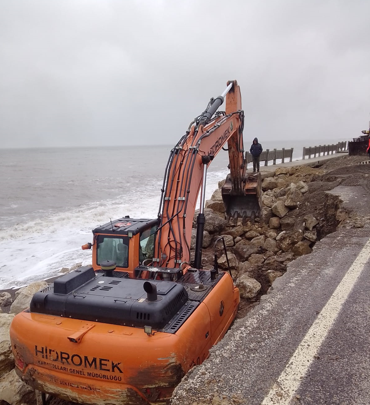 Dalgaların yuttuğu sahil yolu için karayolları ekipleri çalışma başlattı…