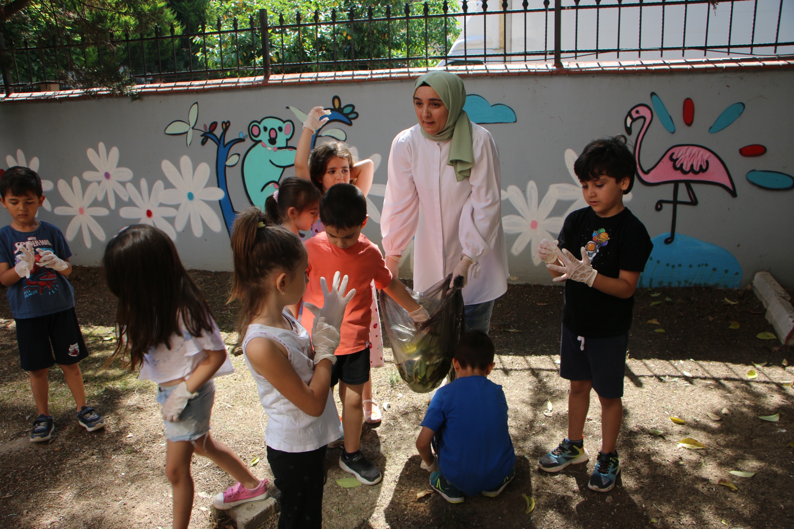 5 Haziran Dünya Çevre Günü ve Türkiye Çevre Haftası nedeniyle çocuklardaki çevre bilincini pekiştirmek isteyen kreş öğretmenlerinin girişimi ile gerçekleştirilen etkinlikte kreş bahçesine çıkan minikler büyük bir temizlik gerçekleştirdi. Eldiven takarak bahçedeki başta plastik olmak üzere doğayı kirleten pek çok maddeyi toplayan minikler geri dönüştürülebilir atıkları da ayrıştırarak geri dönüşümün önemine vurgu yapıldı. Her gün oynamak için çıktıkları yeşil bahçeyi ve oyun alanını tamamen temizleyen minikler dökülen yaprakları bile topladı.