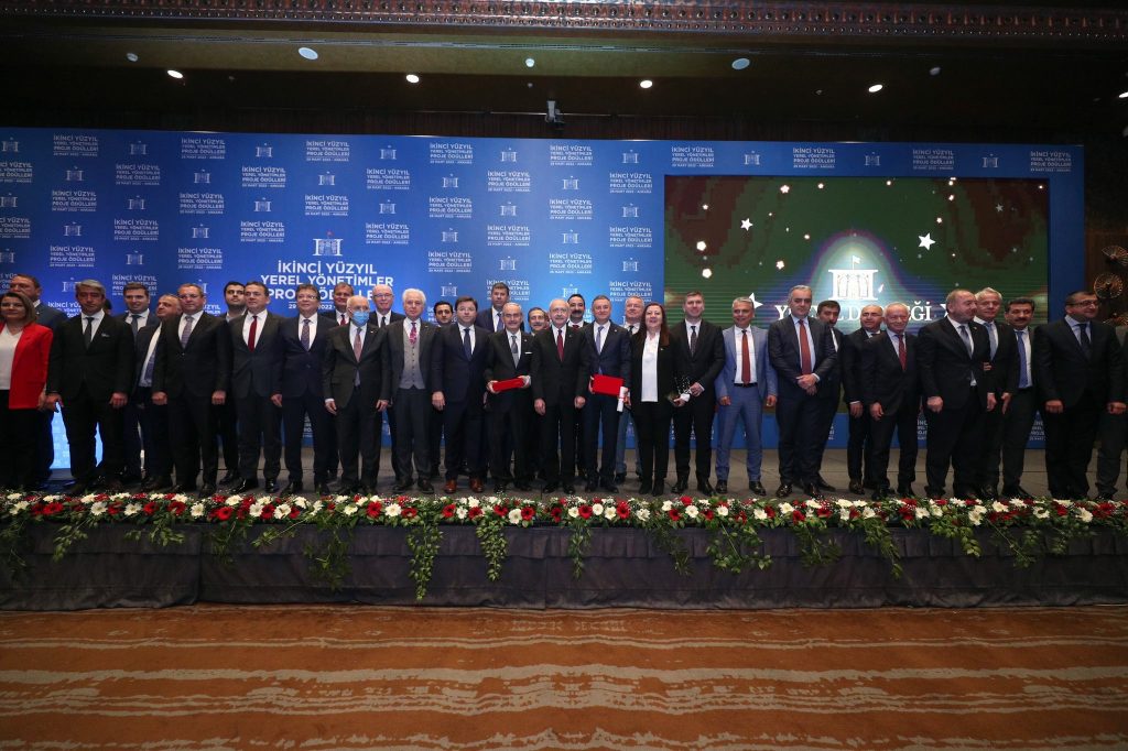 İkinci Yüzyıl Derneği tarafından bu yıl ikincisi dağıtılan Yerel Yönetimler Proje Ödülleri Ankara’da düzenlenen gecede sahiplerini buldu. Etkinlikte hazır bulunan Cumhuriyet Halk Partisi (CHP) Genel Başkanı Kemal Kılıçdaroğlu, Eskişehir Büyükşehir Belediye Başkanı Yılmaz Büyükerşen’e “Yaşam Boyu Onur Ödülü’nü” ve Hatay Büyükşehir Belediye Başkanı Lütfü Savaş’a Expo 2022 organizasyonu nedeniyle verilen başarı ödülünü takdim etti.