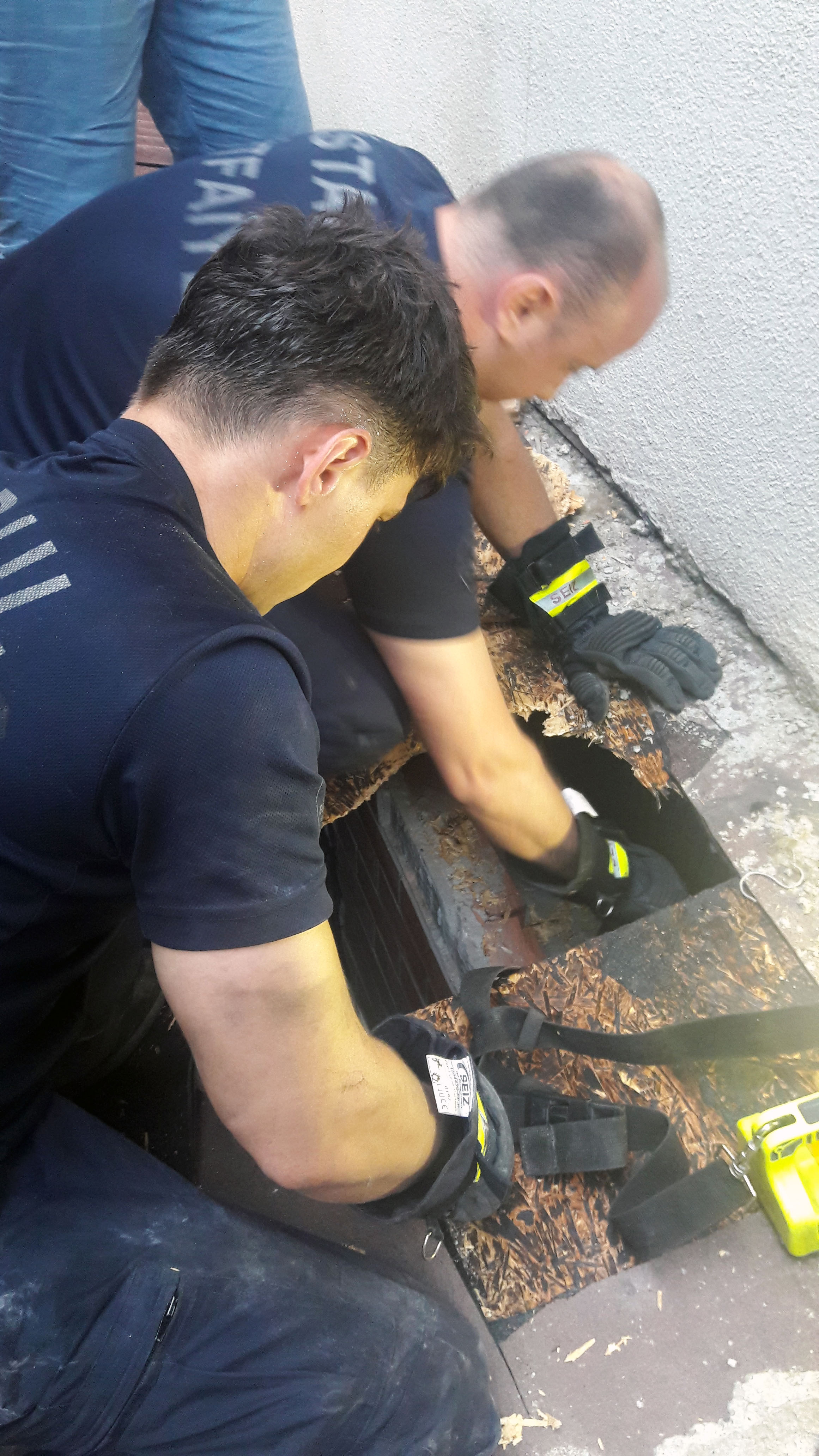 * 4 kişilik itfaiye, 2 kişilik Maltepe Belediyesi Arama-kurtarma birimi ve 1 kişiden oluşan veteriner hekim eşliğinde başlatılan zorlu kurtarma sürecinde hem çatıdan, hem de duvardan yıkım yapılarak, kedinin konumu belirlendi ve kurtarma çalışmaları başlatıldı