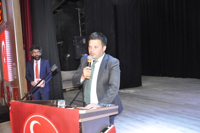 Yeni İlçe Başkanı Tarık Karataş konuşmasında kendisinin ilçe başkanı olmasında desteği olanlara teşekkür etti. Karataş, “ülkücülerin ne uşak olmayı, nede başkalarını uşak olarak kullanmayı kabul etmeyen, şerefli bu yolun yolcularıdır bu ve benzeri sözleri bize öğreterek ayrılan Başbuğ Alpaslan Türkeş’ rahmetle anıyorum. Biz ülkücüyüz, biz Türklüğün keskin kılıcı, İslam’ın yükseklerde dalgalanan diyen ömrünü vatan millet tarafına adayarak önce ülkem sonra partim ve ben ilkesiyle devam eden, Türkmen Beyimiz, Genel Başkanımız, Devlet Bahçeli’ye  saygılarımı ve sevgilerimi sunarım” dedi.