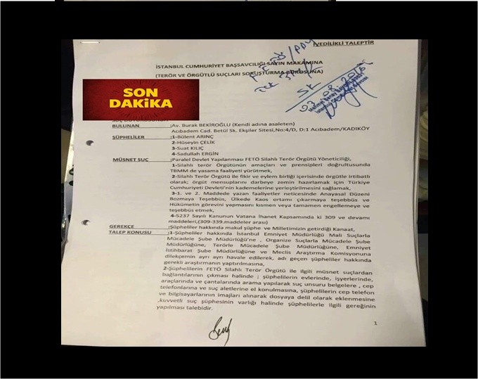 Bülent Arınç, Hüseyin Çelik, Suat Kılıç, Sadullah Ergin için suç duyurusu