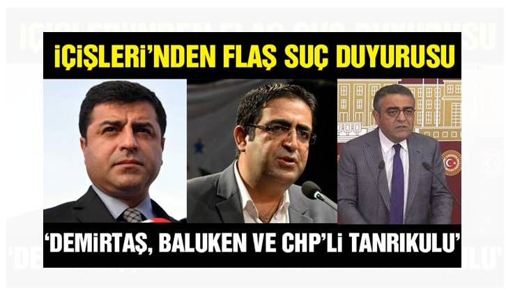 İçişleri’nden Demirtaş, Baluken ve CHP’li Tanrıkulu için suç duyurusu