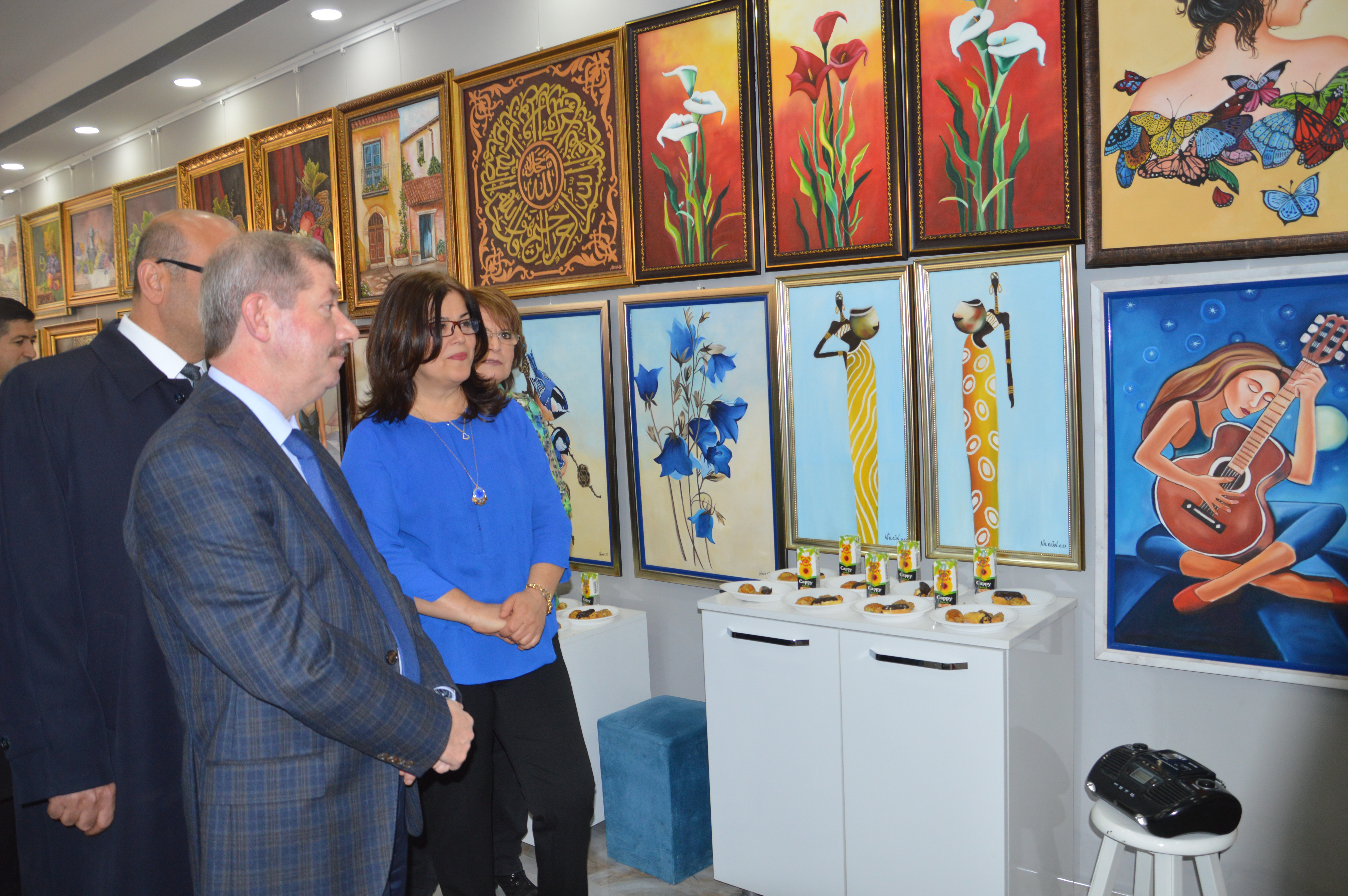 Valla böyle bir serginin ilçemizde sanatı bilip de bunu ifade edebilecek yapıda icraat imalat ve görsel olarak bir şeyler çıkardığı için hanımefendilere teşekkür ederim ilçemizde böyle insanların olması bizim için de övünç kaynağı sanatı temsil eden portreler var içlerinde çok hoş bu yıllardan beri ilçemiz de devam ediyor özellikle hanımefendinin teşviki ile desteği ile bu konuda yeteneği olan insanların bir araya geldiği güzel sanat eserleri çıkmış ortaya ellerine sağlık teşekkür ederim..