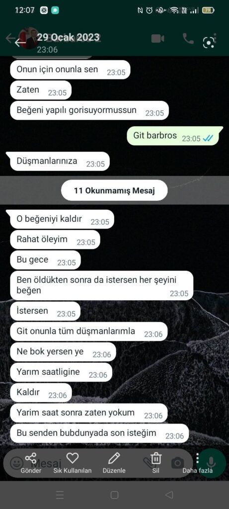 Barbaros Baltacı yine yalan yanlış bilgiler ile video yaparak intihar videolarını sanki dizi film çekimi demosuymis gibi söyleyip sunmuş, Allah aşkına hangi film dizi ajans böyle bir zanaxli,şarj kablolu demo çektirir? Hepsi tarihi tarihine mevcuttur. Hala yalanlarıyla algı yapmaktadır. Bu insan ,insan demeye de bin şahit ister ,sürekli benimle uğraşıyor heralde benim adımı kullanarak böyle gündeme gelmek meşhur olmak istiyor. Ruh hastası bu kişiye inananlara da yazık diyorum,inanmayanlara da teşekkür ediyorum,bu insanın bu gibi eylemlerini bilip ,fakat neden bu insandan korkuyor bana sahip çıkmıyorsunuz yalanlarına boyun egiyorsunuz? Bu insanın karaktersiz olduğunu biliyor ve söylüyorsunuz,neden bunu duyurmuyor susuyorsunuz???