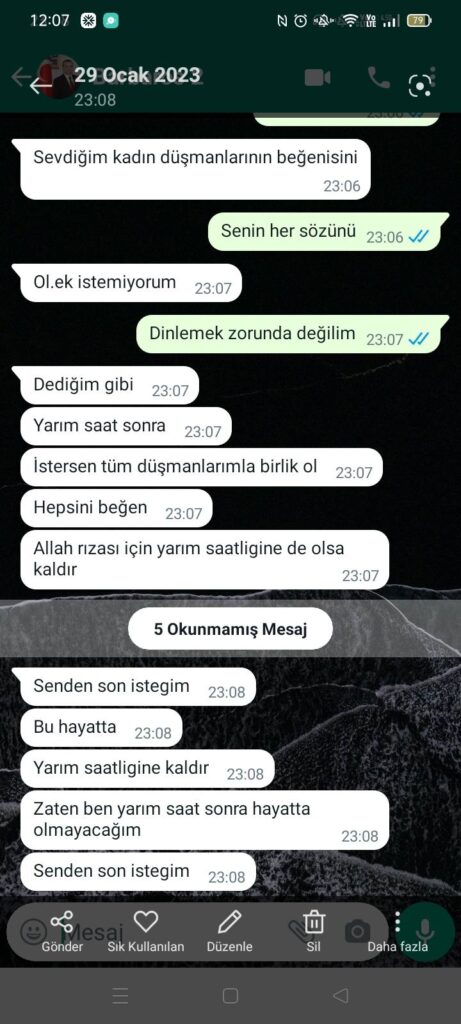 Kamuoyuna yansıyan bu intihar videoları da tam da bu dönemde, beni tekrar ikna edip, geriye döndürmek için bizzat kendi evinde çektiği ve bana acitasyon amaçlı intihar videolarıdır,