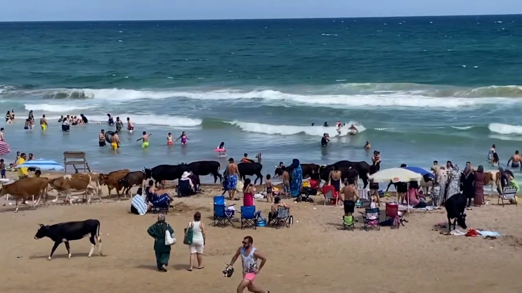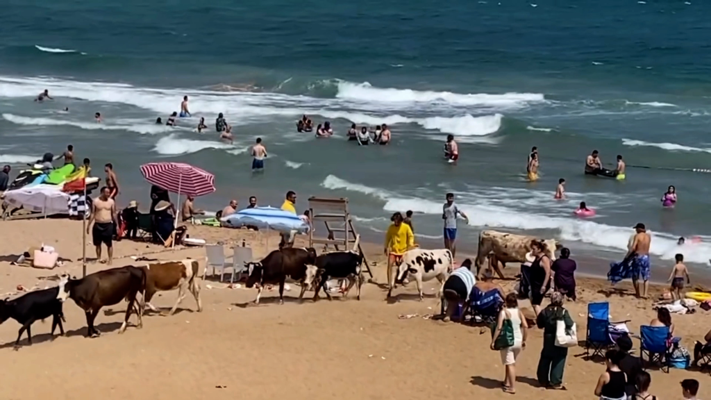 Şile’de bir sahilde büyükbaş ve küçükbaş hayvanların yer aldığı bir sürü denize giren vatandaşların arasında başıboş bir şekilde dolaşırken bir vatandaş tarafından cep telefonuyla görüntülendi.