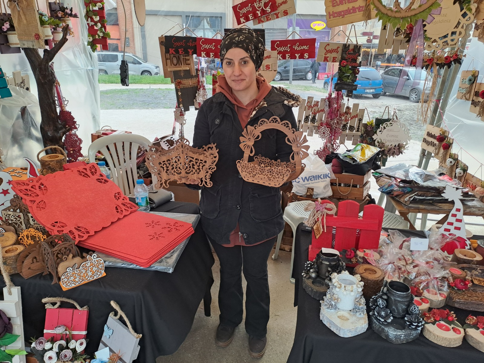 Ceyda Karamallıoğlu girişimci kadın, ben bunu Halk Eğitim Merkezi’nde eğitimini aldım. öğrendim öğrendikten sonra internet üzerinden Instagram adresiyle pazarını, satışını yapıyorum. Panayır da benim bu işi yapabilmem adına kendimi gösterebilmem adına bir artı oldu. Burada ürünlerimi sergiliyorum. Nasıl yaptığımı gösteriyorum. Evde yapıp ürettiklerini gösterebilme olanağı sağlıyor bu fuarlar.
