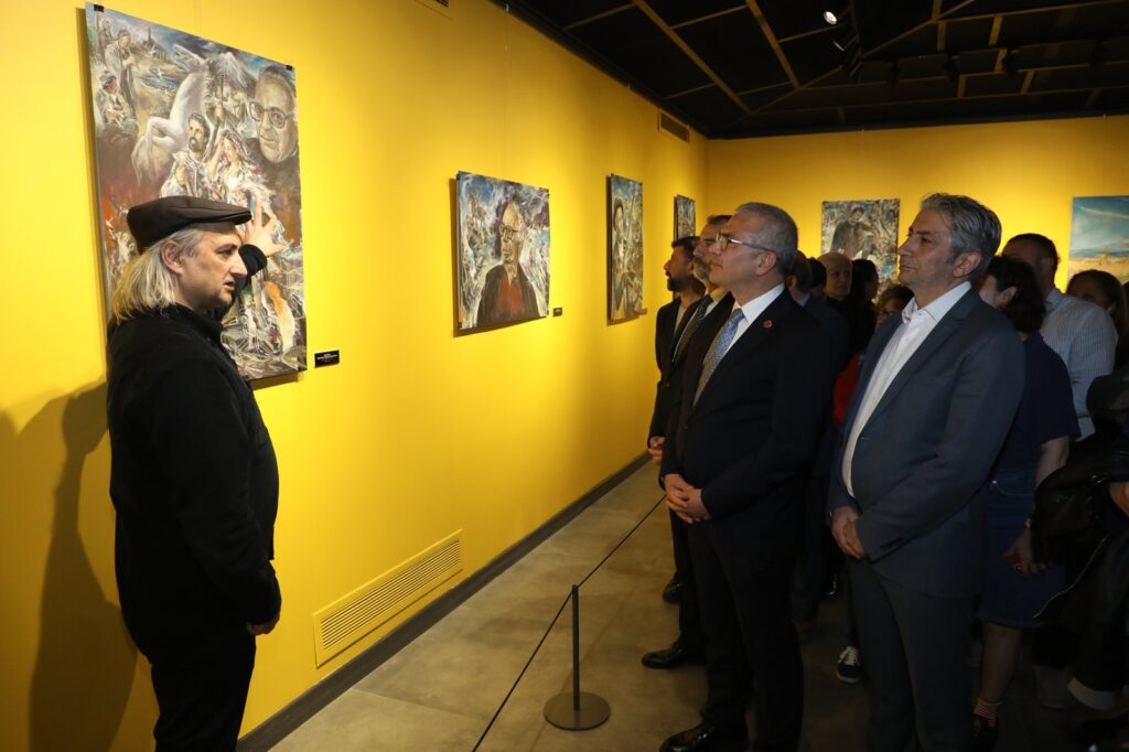 Konuşmaların ardından kurdele kesimiyle sergi açılışı gerçekleşti. Katılımcılar, Özay’ın rehberliğinde sergide yer alan eserleri gezme fırsatı buldu.