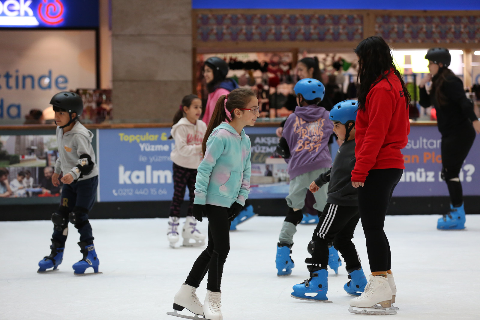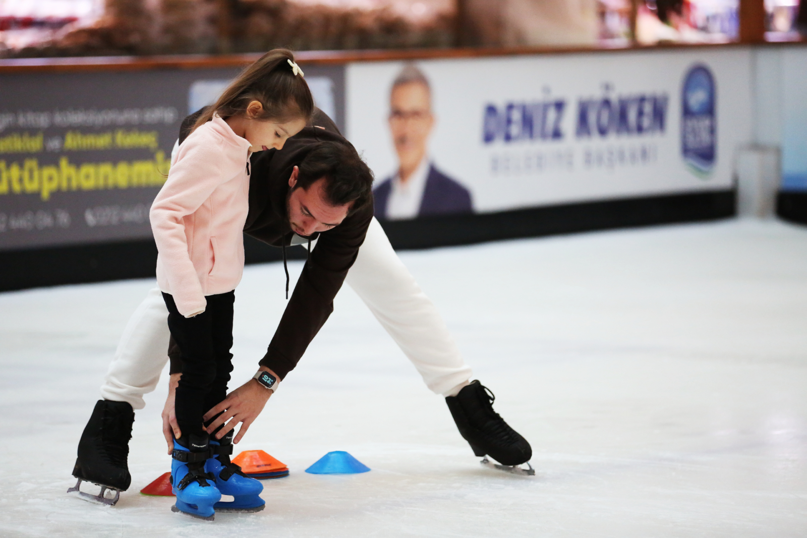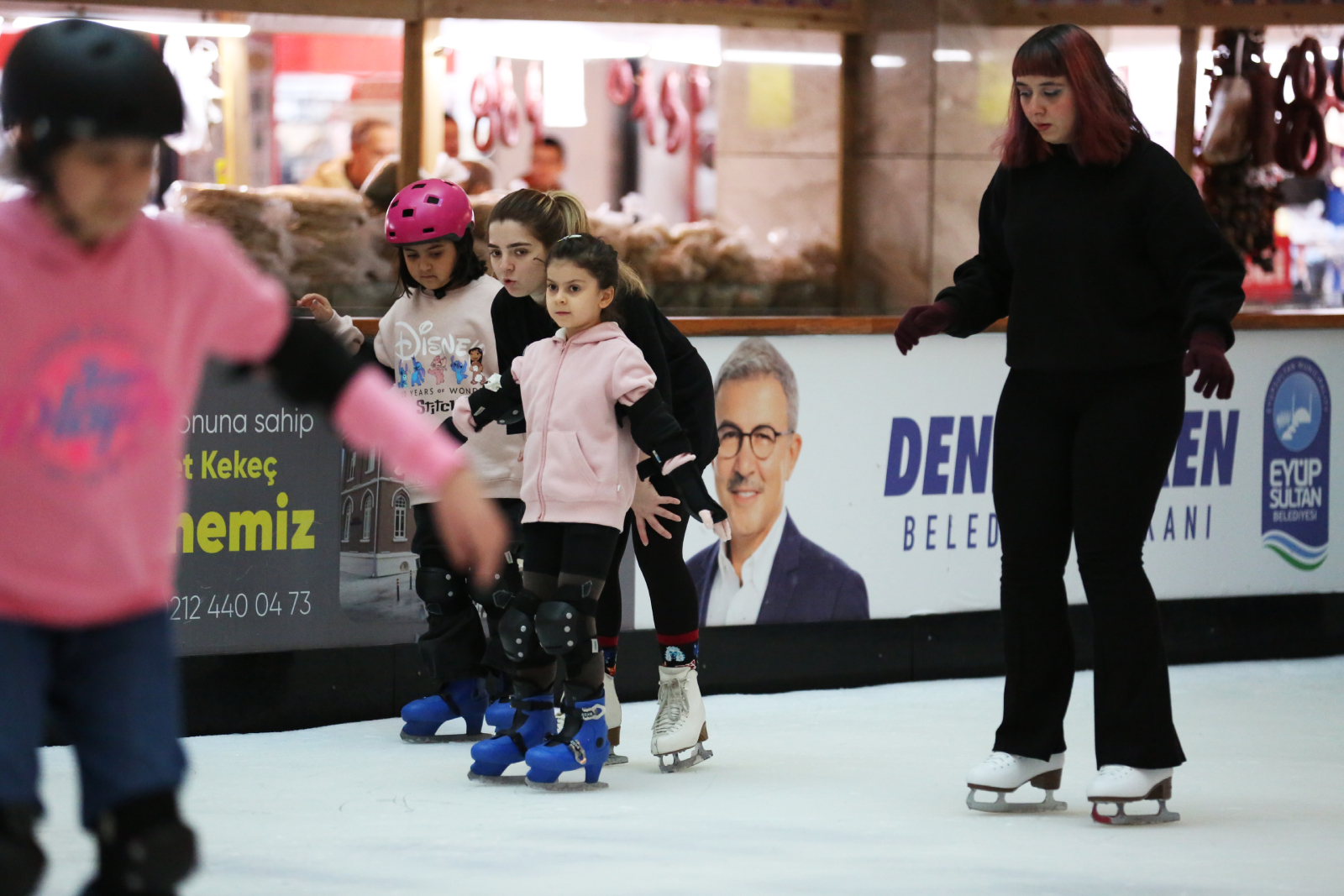Eyüpsultan Belediye Başkanı Deniz Köken’in 2022 yılında hizmete açtığı ve bugüne kadar 33 bin kişinin faydalandığı buz pistinde öğrenciler, profesyonel eğitmenler eşliğinde ücretsiz olarak buz pateni yapabiliyor.
