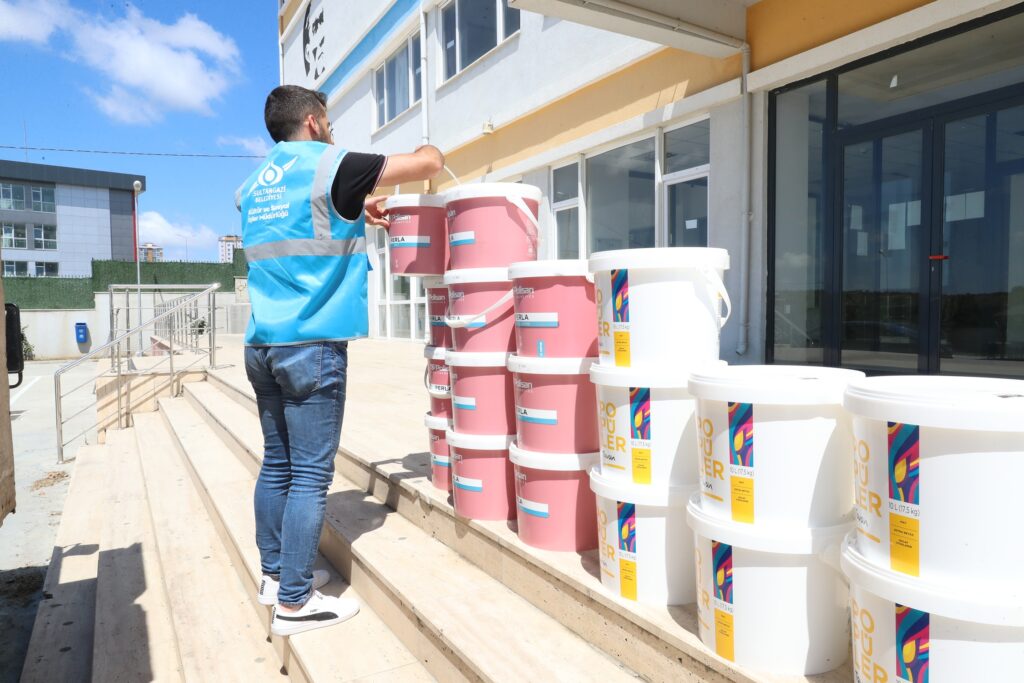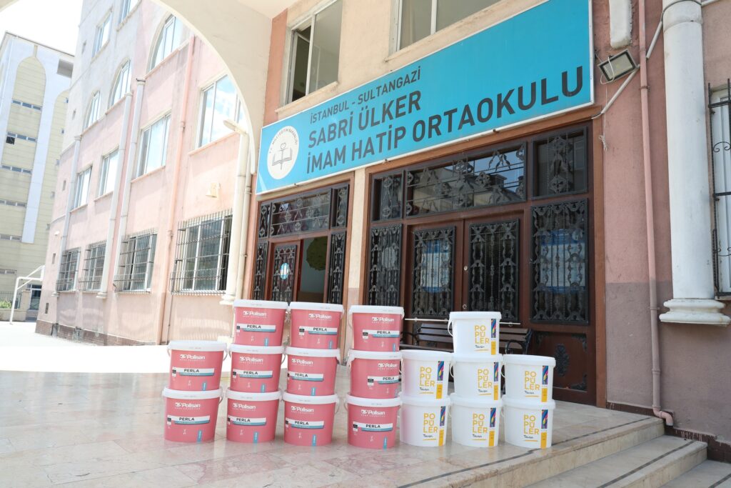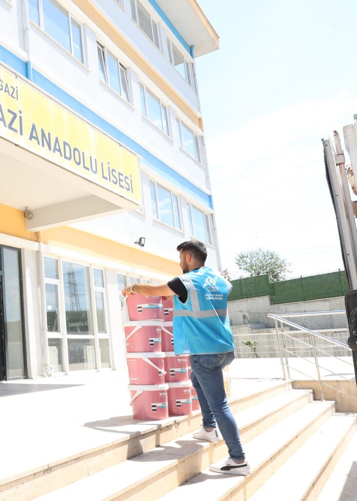Sultangazi Belediyesi, ilçedeki ilk, orta ve lise kademelerindeki 96 okula, toplam 40 tonluk boya malzemesi desteğinde bulunuyor.