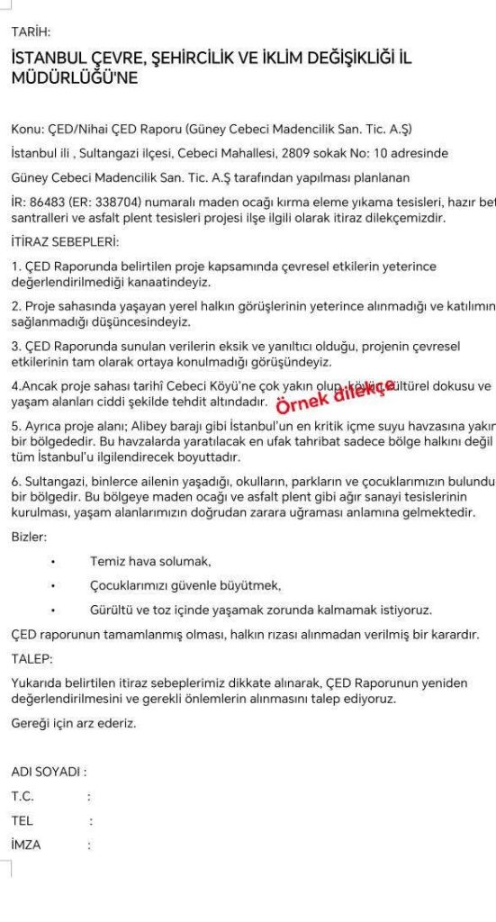 Altan, mahalle sakinlerini ÇED Raporu’nu incelemeye ve itiraz hakkını kullanmaya çağırdı.