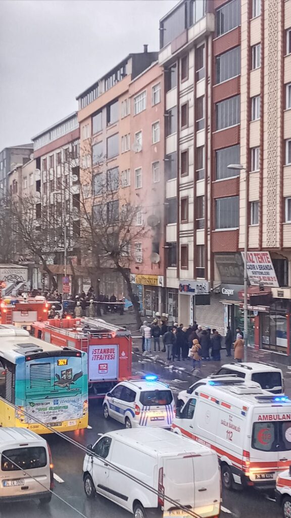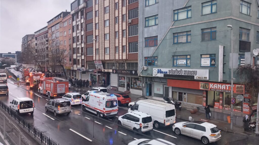 Çok sayıda itfaiye ve ambulyansın hazır bulunduğu yangında vatandaşlar kendini sokağa attı …