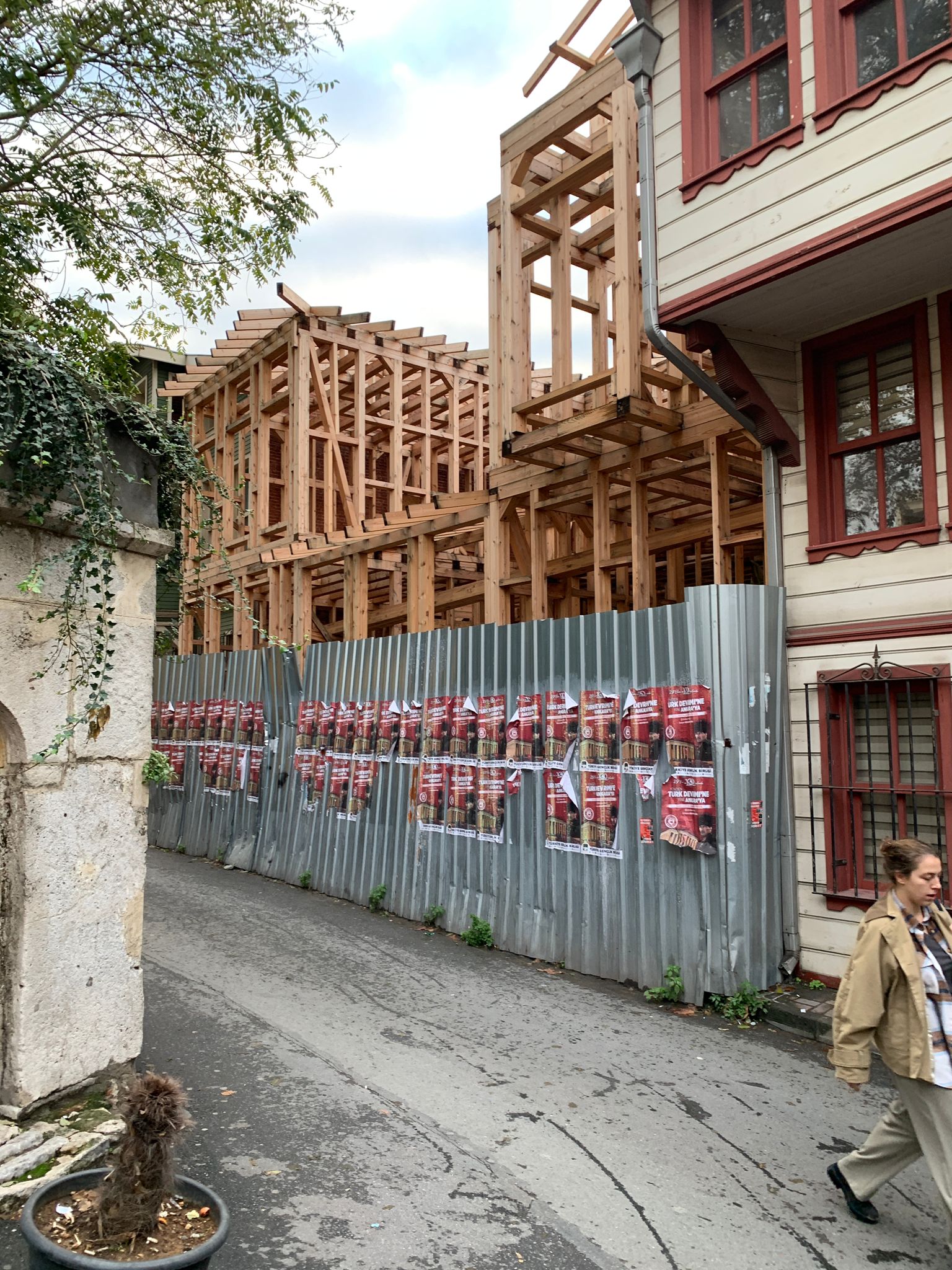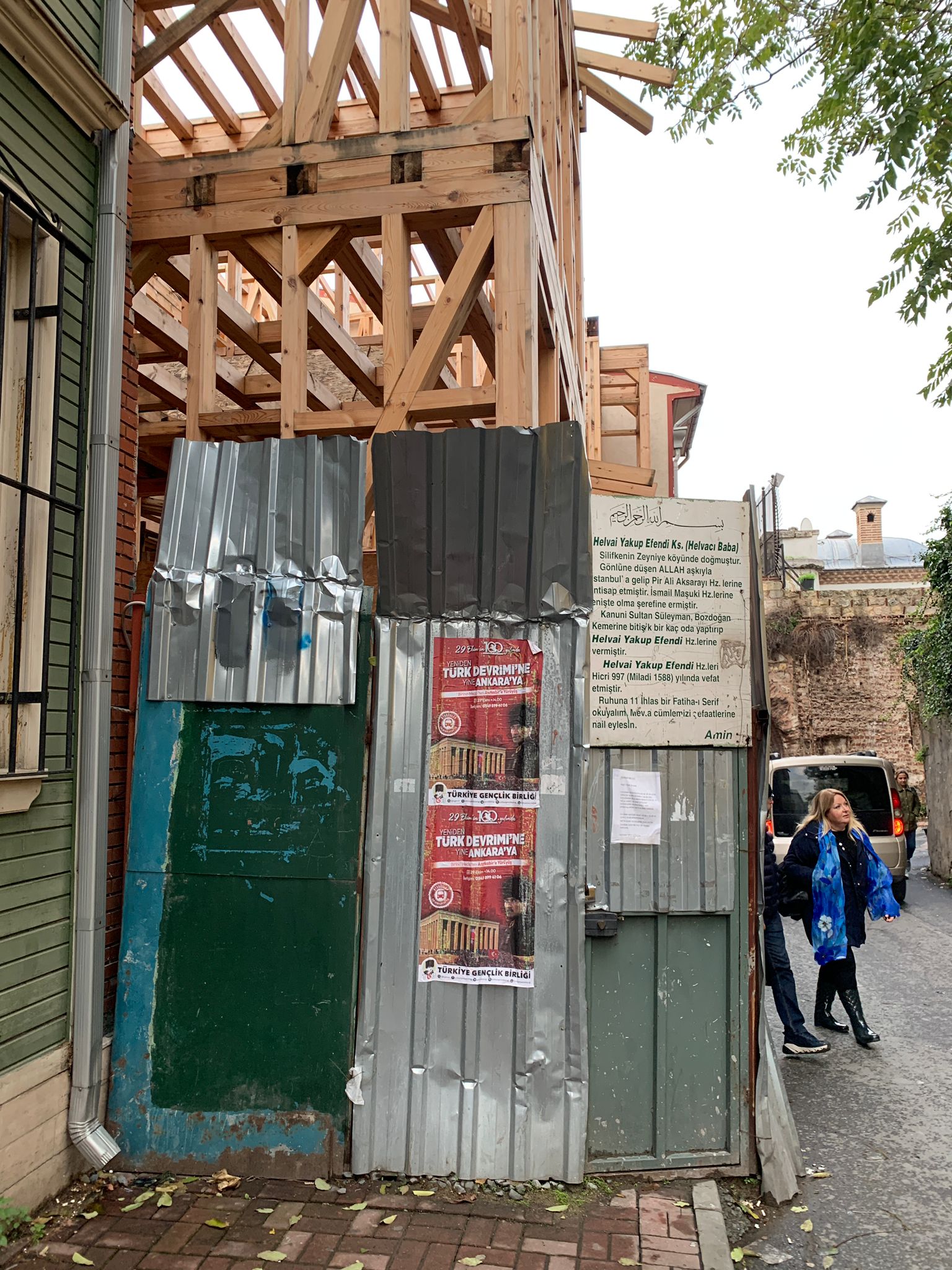 Türbeyi resterasyon adı altında yenilemek isteyen, İBB ” başladığı restarasyon çalışmasını iki yılda bitiremedi üstüne bir de Helvai Tekkesini Kazandırdık, Diye Pankart Astılar….