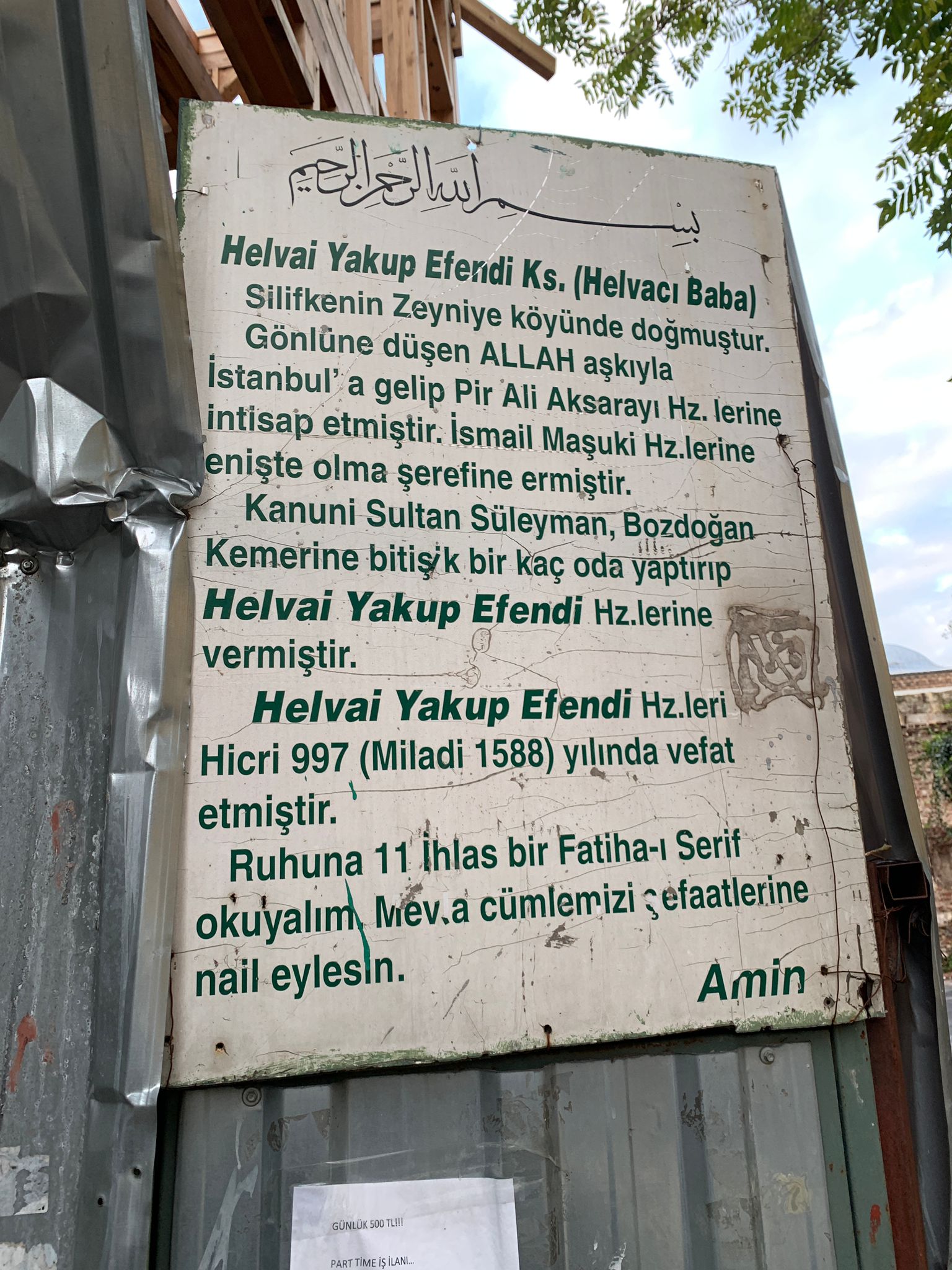Süleymaniye, ye çıkan yol üzerinde Helvacı Baba Tekkesi olarak da, bilinen türbe ,nin yapımı 2 yıldır tamamlanamadı. Son bir yıldır da hiç yanına uğramayan Türbe, nin adı da manidar olarak değişime uğratıldı…
