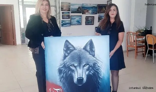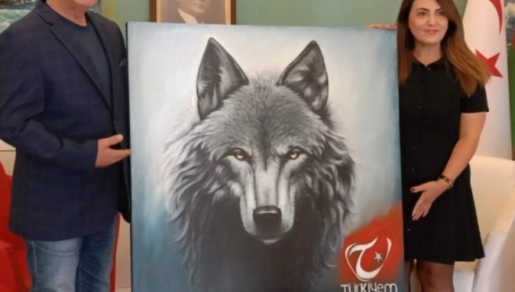 Ressam Süheyla Üstek Bir Bozkurt sevdalısı olan Türkiyem TV Genel Müdürü İbrahim Erdem Karabulut’un rica ile istekte bulunduğu özel bir BOZKURT TABLOSU hiç tahmin edilmeyen büyüklükte ve muhteşem bir güzellikle çizilerek kalabalık çalışma arkadaşlarının katıldığı bir anda Türkiyem TV’de kendisine bizzat Ressam Süheyla Üstek tarafından verildi.