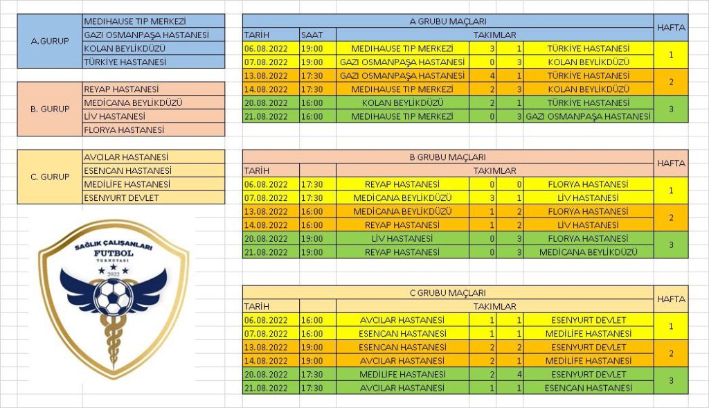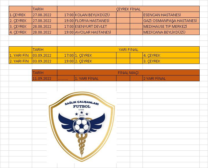 Çeyrek final maçı 27.08.2022 tarihinde saat 19.00 da Okan Buruk Stadyumu Büyükçekmece ‘de Florya hastanesi ile oynanacaktır.