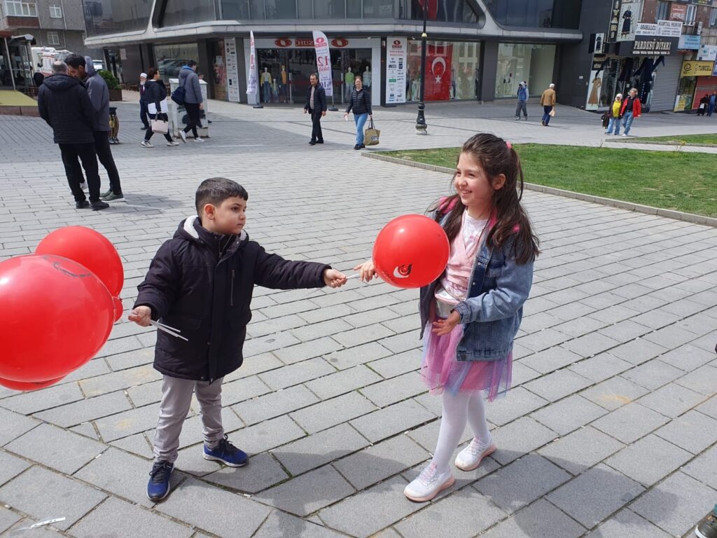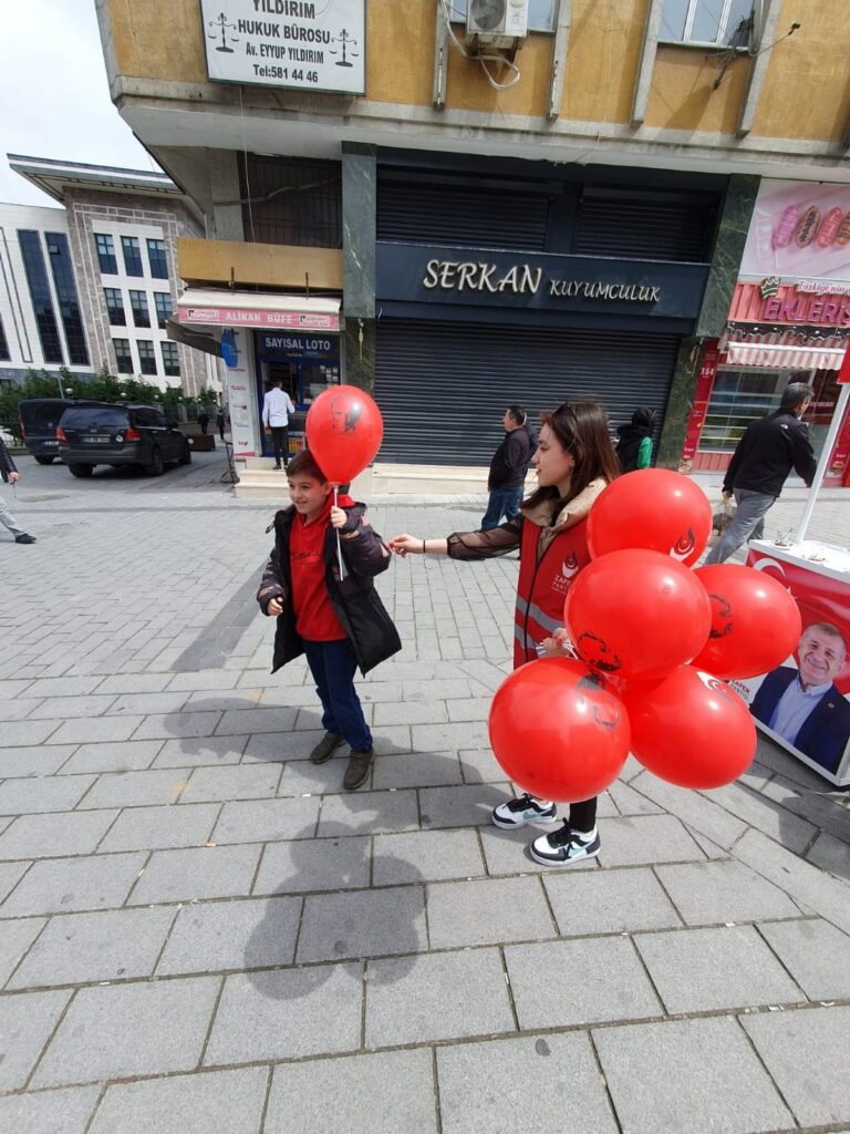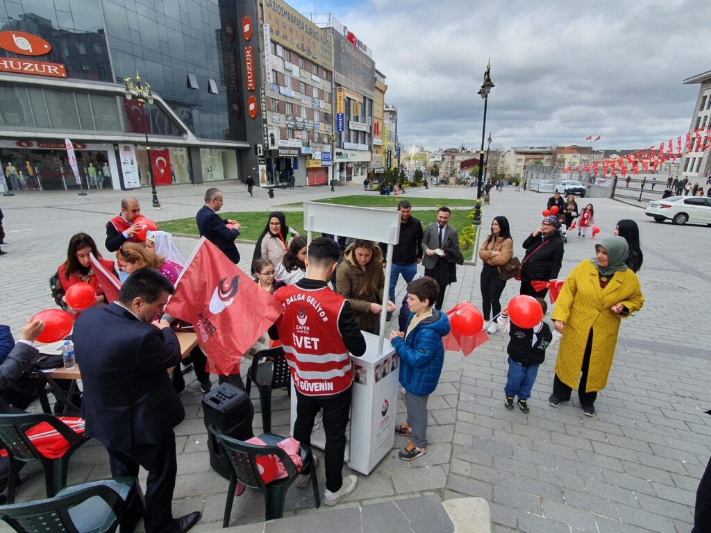 Gaziosmanpaşa Kaymakamlığın karşısında bulunan yürüyüş yolunda Etkinlik düzenleyen Zafer Partisi İlçe Başkanlığı burada, çocuklara balonlar dağıtarak, çocukların bayramını kutladı.