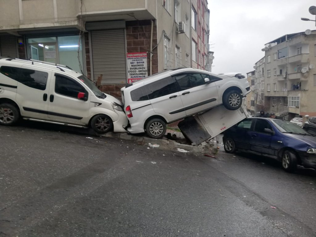 | Gaziosmanpaşa Karadeniz Mahallesi’nde kontorlü kaybeden otomobil zincirleme kazaya neden oldu. |