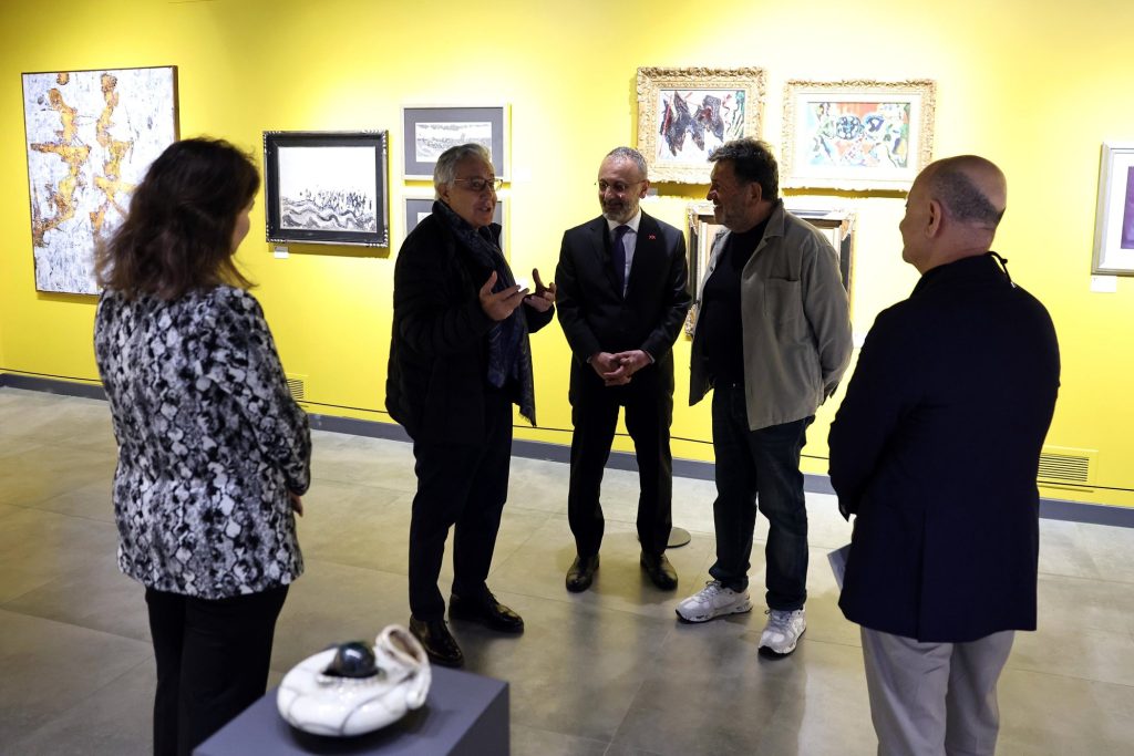 Ziyaret sırasında Taviloğlu, Livaneli ve Tekinalp’e sergide yer alan eserlerin hikâyelerini anlattı, eserlerle ilgili bilgi verdi.