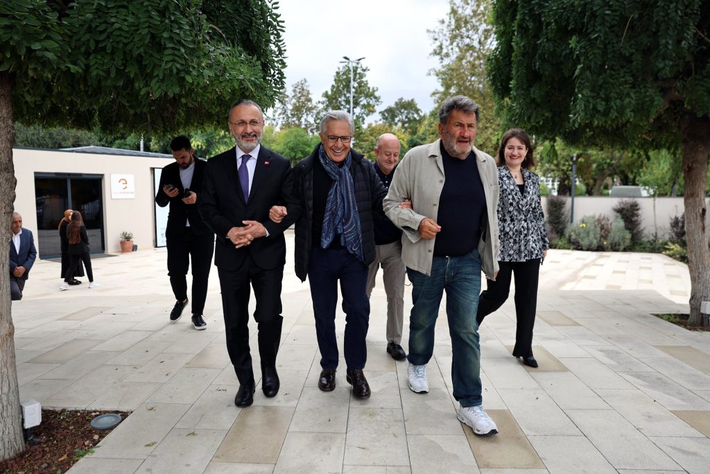 Ziyaret sonunda ise Başkan Özmen, Taviloğlu, Livaneli ve Tekinalp günün anısına Galeri Eyüpsultan’ın önünde hatıra fotoğrafı çektirdi.